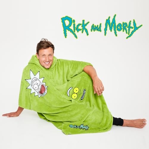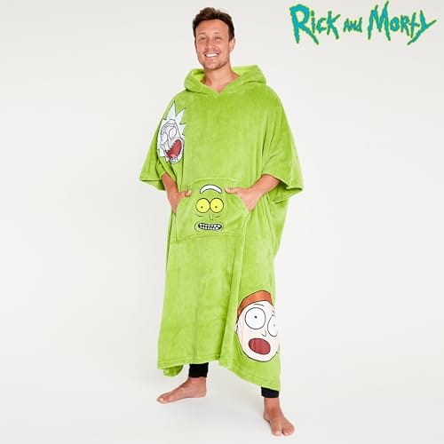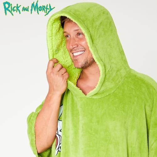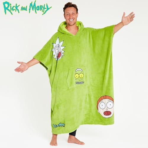 RICK AND MORTY Koc z kapturem dla mężczyzn nastolatków – polar ponadwymiarowy koc do noszenia – prezenty dla niego – zielony ZIELONY rozmiar uniwersalny