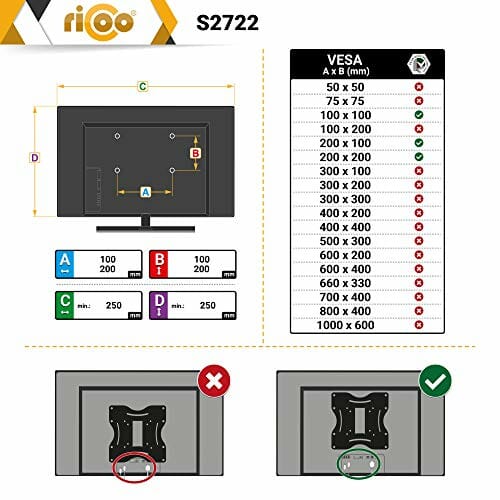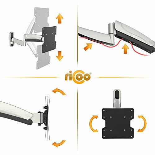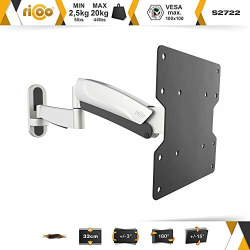 RICOO Uchwyt ścienny do monitora TV z obrotową sprężyną gazową do 27 – 47 cali, uniwersalny uchwyt do telewizora S2722, uchwyt ścienny na telewizor 32 cale +, do 20 kg, maks. VESA 200 x 200 mm