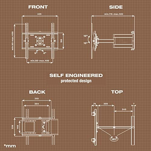 ✅ 𝗙𝗨𝗡𝗞𝗖𝗝𝗘: Ten uchwyt: 𝗙𝗨𝗡𝗞𝗖𝗝𝗘: Ten uchwyt do telewizora można obracać do +/- 90 stopni, gdy szerokość ekranu to maksymalnie 80 cm. Zakres pochylenia wynosi +/- 15 stopni. Odległość od ściany wynosi od 115 mm do 522 mm. Dla optymalnej regulacji po montażu, płytę frontową można obracać o +/- 6 stopni