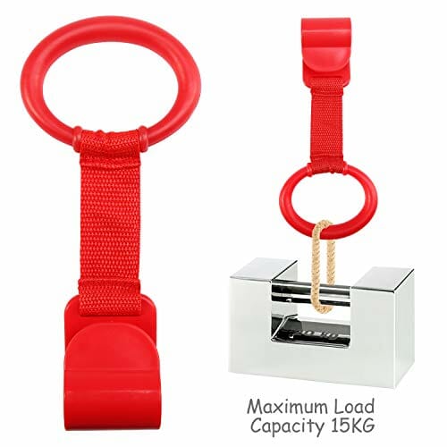• – Praktyczny: Kiedy dziecko w wieku 0-8 miesięcy leży lub siedzi w pozycji stojącej. Pierścień do ciągnięcia można przymocować do krawędzi łóżka łóżka, aby pomóc dziecku nauczyć się stawiać. Zabawki i małe przedmioty można również zawiesić jednocześnie.