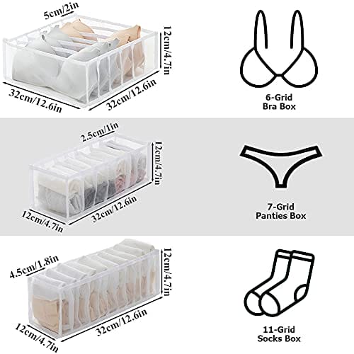 ✅ Rozmiar: 6-siatkowy organizer: Rozmiar: 6-siatkowy organizer na biustonosz: 12,6 x 32 x 12 cm (32 x 32 x 12 cm), 7-siatkowy organizer na bieliznę: 4,7 x 12,6 x 4,7 cala (12 x 32 x 12 cm), 11-siatkowy organizer na skarpetki: 4,7 x 4,7 x 12,6 cala (12 x 32 x 12 cm)