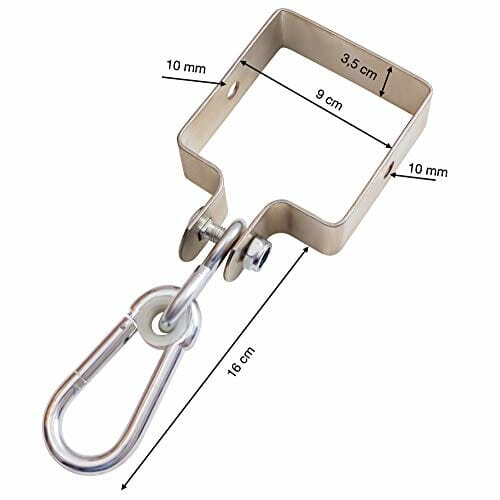 ✅ 4 x obejma: 4 x obejma huśtawki z hakiem karabińczykowym na belki czworokątne 9 x 9 cm