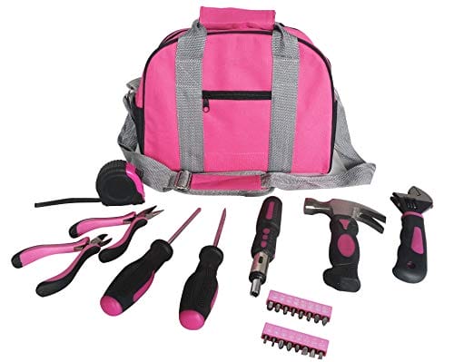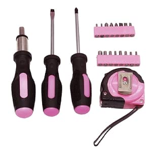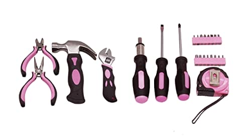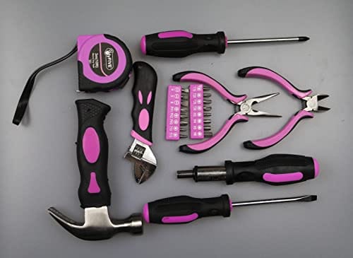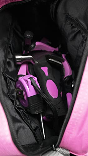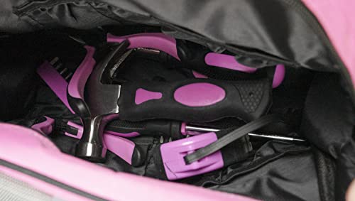• Ten modny 25-częściowy różowy zestaw narzędzi zawiera wszystkie niezbędne przedmioty niezbędne do szybkiego wykonania prac DIY w domu.