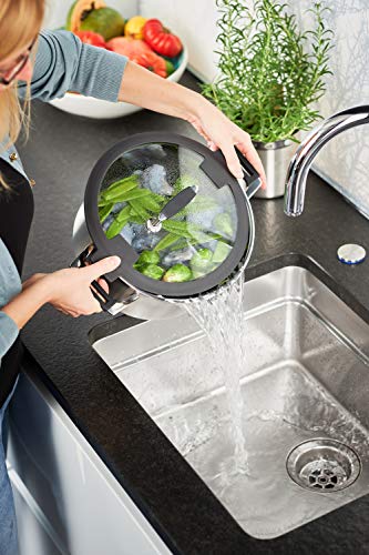 ✅ Porządek i sprytny:: Porządek i sprytny: pokrywa z boku do zawieszenia w celu łatwej obsługi podczas gotowania i na stole w jadalni, przy czym zbierany jest kondensat. Silikonowa osłona chroni pokrywę i uchwyty boczne przed zbyt silnym nagrzewaniem dwa wyrafinowane możliwości odcedzania