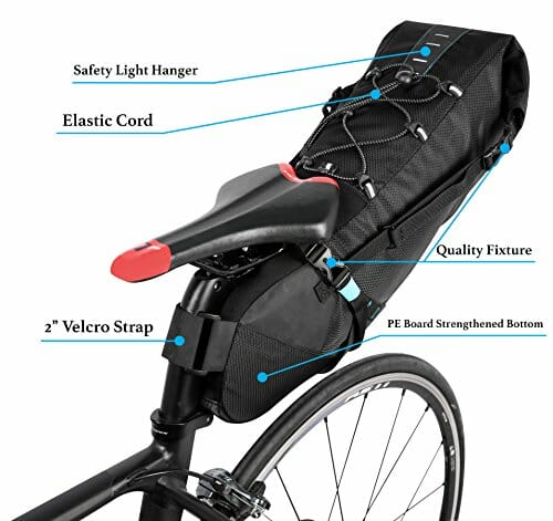 • Łatwa instalacja i uniwersalne dopasowanie: za pomocą jednego szerokiego paska VELCRO przymocuj do sztycy siodełka i dwóch solidnych nakładek zatrzaskowych pod siodełkiem rowerowym. Kompatybilny z prawie wszystkimi rodzajami siodełek rowerowych i sztycą podsiodłową.