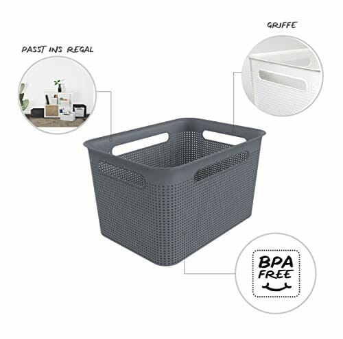 ✅ Wymiary: 36 x: Wymiary: 36 x 26, 2 x 21 cm (dł. x szer. x wys.) – pojemność: 16 litrów – z 4 uchwytami do wygodnego przenoszenia – pasuje do różnych regałów, np. w pokoju dziecięcym lub łazience