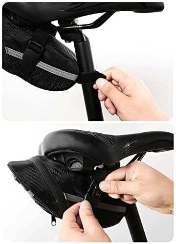 • 【Idealna pojemność】Torba podsiodłowa rowerowa, idealna na wszystko, co jest potrzebne, może być używana do przechowywania narzędzi i drobiazgów, takich jak klucze, pieniądze, zestaw do naprawy opon, narzędzie wielofunkcyjne, żel energetyczny lub przekąski.