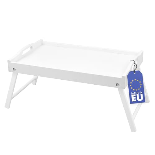 Rubberneck Taca do łóżka z drewna brzozowego, ze składanymi nogami, jako taca śniadaniowa i taca do serwowania śniadania w łóżku, naturalna/drewno