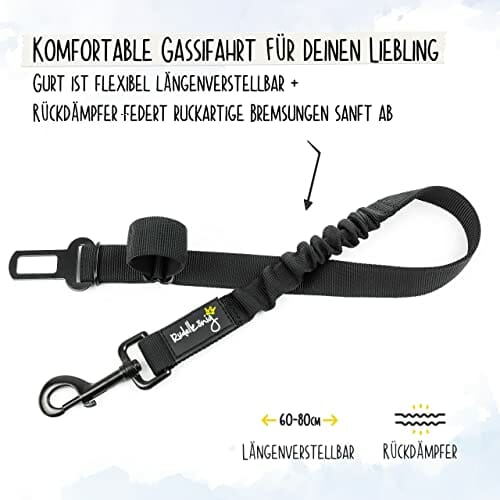 Rudelkönig Pas bezpieczeństwa dla psa do samochodu – regulowany pas bezpieczeństwa – pas bezpieczeństwa z tylną poduszką dla wszystkich ras psów i typów samochodów