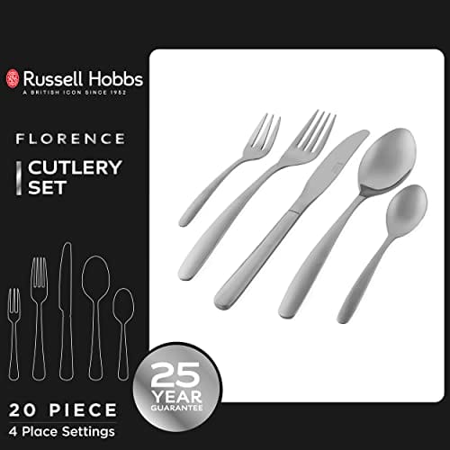 Russell Hobbs RH02264EU7 Florence 20-elementowy zestaw to nie tylko estetyka i wygoda, ale także funkcjonalność. Sztućce są łatwe do czyszczenia, można je myć zarówno ręcznie, jak i w zmywarce. Ich trwałość sprawia, że będą Ci służyć przez wiele lat, zachowując swoje pierwotne właściwości.