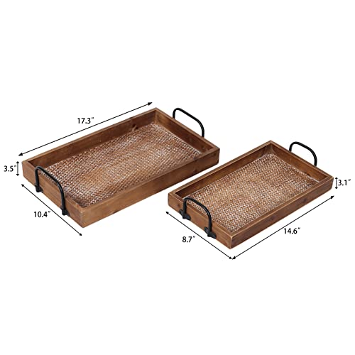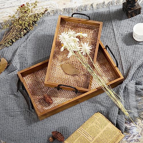 • [Zestaw 2 tacek do serwowania] Ta drewniana taca ma styl vintage i tworzy atmosferę, wspaniałe akcesorium do domu.