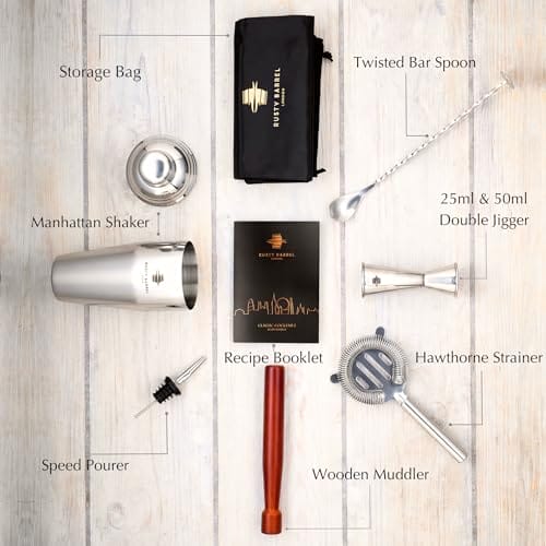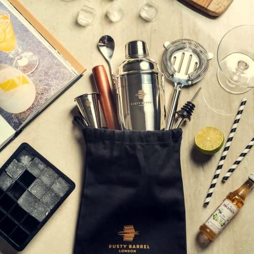 Zestaw Barmański Rusty Barrel Mayfair | Zestaw Barowy do Koktajli z Szejkerem do Drinków i Akcesoriami Barmańskimi | Shaker do Koktajli | Profesjonalny Zestaw Barmański w Opakowaniu Prezentowym