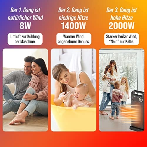 Dodatkowo, Sainlogic 2000W ceramiczny termowentylator posiada trzy poziomy mocy, które umożliwiają precyzyjne dostosowanie temperatury do Twoich potrzeb. Możesz wybrać niski poziom mocy dla delikatnego ogrzewania, średni poziom mocy dla komfortowego ciepła lub wysoki poziom mocy dla intensywnego nagrzewania.
