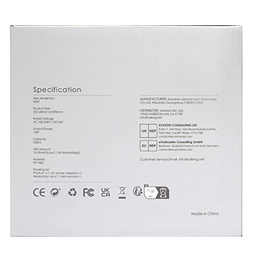 Dyfuzor olejków eterycznych: Dyfuzor olejków eterycznych bez BPA: Dyfuzor olejków eterycznych marki Salking to bezpieczny dla dzieci nawilżacz powietrza z polipropylenu (PP). Należy pamiętać, że nadaje się do pomieszczeń o powierzchni 50 m². Jeśli powierzchnia będzie większa, efekt aromatyczny będzie mniejszy.