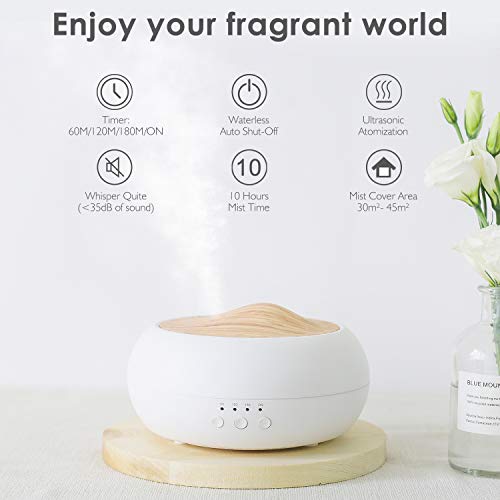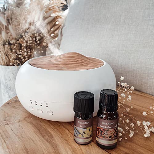 SALKING dyfuzor ultradźwiękowy, pojemnik 260 ml, aromaterapia, oleje eteryczne, elektryczny, ciepła biel, wzór słojów drewna, do domu, biura lub sali uprawiania jogi