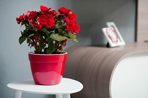 Santino ASTI Samonawadniająca doniczka z wskaźnikiem poziomu wody, 18 cm, okrągła, jakość premium, do wnętrz, na rośliny, kwiaty, zioła (Ø 18 cm, wys. 14 cm, 2,5 l – czerwona/biała)