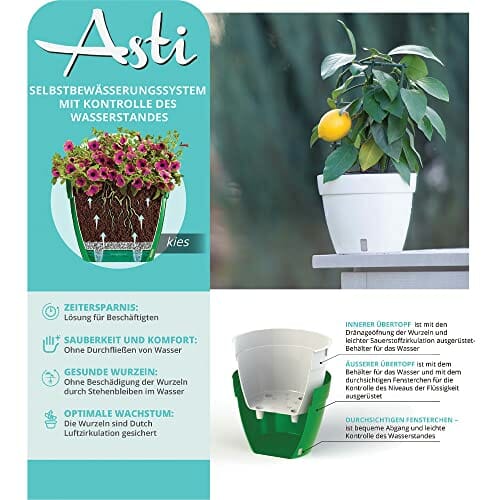 Santino ASTI Samonawadniająca doniczka z wskaźnikiem poziomu wody, 18 cm, okrągła, jakość premium, do wnętrz, na rośliny, kwiaty, zioła (Ø 18 cm, wys.