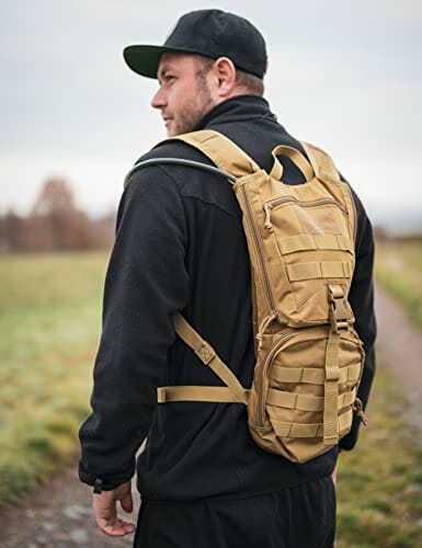 • Plecak: wykonany z poliestru 1050D. Jest bardzo wytrzymała i odporna na ścieranie. Kieszenie zapewniają wystarczająco dużo miejsca na bukłak i wszystko, co ważne, co masz przy sobie