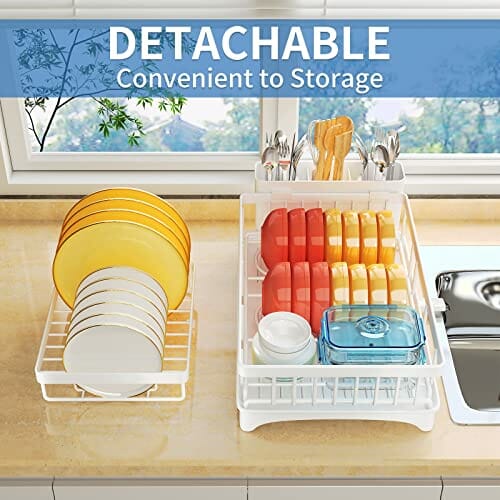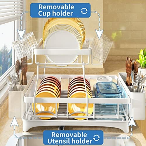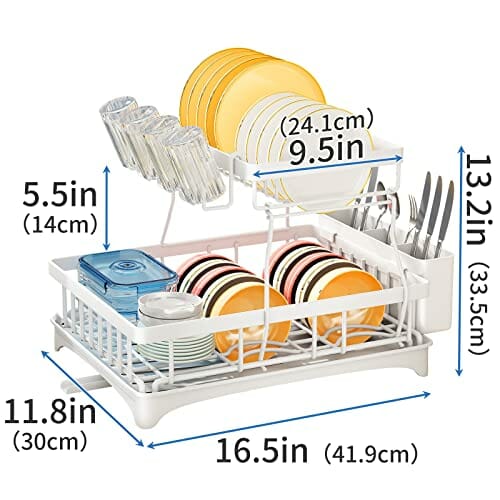 SAYZH Ociekacz do naczyń to niezastąpiony dodatek do Twojej kuchni, który pomoże Ci utrzymać porządek i organizację wśród naczyń. Ten zdejmowany 2-poziomowy stojak na naczynia i zestaw ociekacza o dużej pojemności zapewni Ci wygodne i efektywne suszenie naczyń, jednocześnie oszczędzając miejsce na Twoim blacie kuchennym.