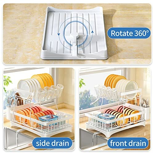 SAYZH Ociekacz do naczyń 2-poziomowy z zestawem ociekacza – dużej pojemności, biały
