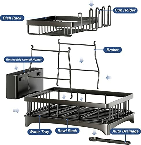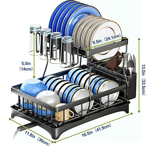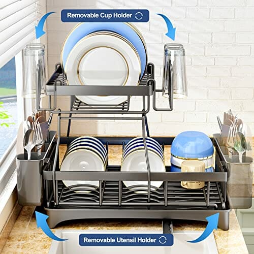 SAYZH Ociekacz do naczyń to niezastąpiony pomocnik w Twojej kuchni! Ten odłączany 2-poziomowy stojak do ociekania naczyń i zestaw ociekaczy zapewni Ci nie tylko doskonałą organizację, ale także oszczędność miejsca na Twoim blacie kuchennym.