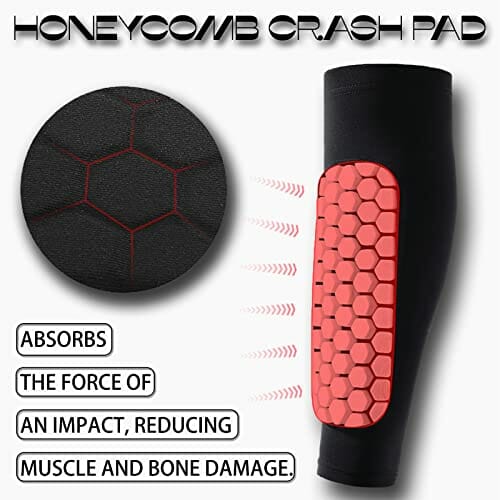 • [Kompleksowa ochrona]: niezależna konstrukcja o strukturze plastra miodu i antykolizyjna, która jest lekka i skutecznie rozprowadza siłę uderzenia. Wysoce elastyczna tkanina ściśle dopasowuje się do konturów nóg. Kompresuje i skutecznie wyrównuje siłę nóg. Zapewnia kompleksową ochronę piszczeli i łydek