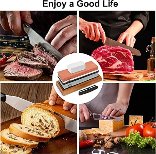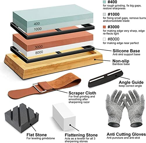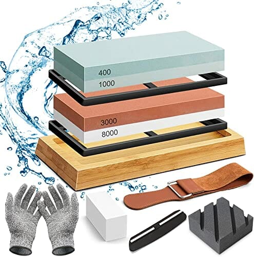 kamień szlifierski zestaw 9 w 1, dwustronna ostrzałka do noży 400/1000 i 3000/8000, profesjonalna ostrzałka do noży z antypoślizgowym bambusowym dnem,