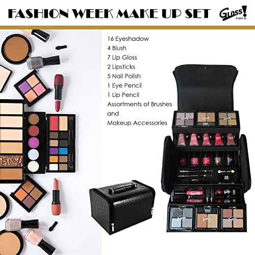 Zestaw do makijażu Gloss! – Moda – 44 szt. – Prezent na Boże Narodzenie dla kobiet – pudełko na kosmetyki