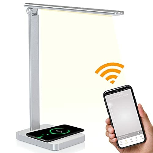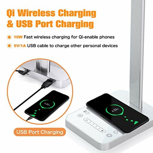 Lampa biurkowa LED, ściemniana lampa stołowa, USB LED z bezprzewodową ładowarką QI, 6 poziomów jasności, ochrona oczu, lampka do czytania, lampka nocna, obsługa za pomocą panelu dotykowego, obrotowa lampa biurowa z WiFi