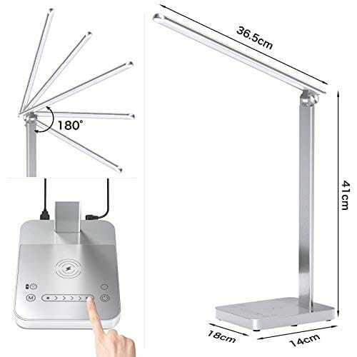 • 【Bezprzewodowa ładowarka QI i port ładowania USB】Ta lampa biurkowa LED z bezprzewodowym ładowaniem może szybko naładować kompatybilne urządzenia iPhone i Samsung o mocy do 10 W. Ulepszone, zintegrowane wyjście USB maks. 5 V/1 A, dzięki któremu można wygodnie ładować również urządzenia mobilne. Oferujemy wysokiej jakości zasilacz 12 V/1,5 A, który ładuje się szybciej i sprawia, że oświetlenie jest stabilne (zasilacz wchodzi w zakres dostawy).