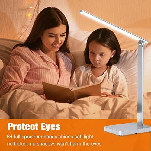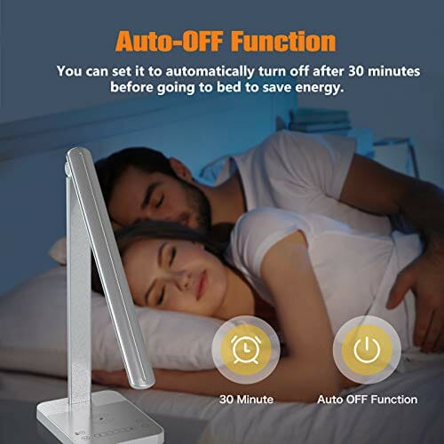 • 【Panel LED chroniący oczy i automatyczny wyłącznik czasowy】Lampa stołowa LED z 64 pełnozakresowymi perłami emituje miękkie światło, bez migotania, bez cienia, dzięki czemu skutecznie zapobiega zmęczeniu oczu spowodowanym migoczącym światłem i jaskrawym oślepieniem. Ta lampa stołowa najlepiej nadaje się jako prezent dla studentów w nowym semestrze. Z 30-minutowym automatycznym wyłącznikiem czasowym do oszczędzania energii podczas zasypiania pod lampą.