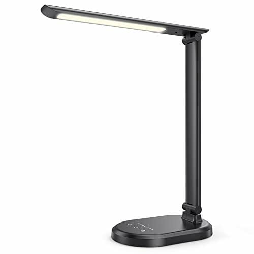 • Nowa wersja lampy biurkowej 5 kolorów – 10 poziomów jasności: Lampa biurkowa z 5 trybami kolorów i 10 poziomami jasności, które zapewniają 50 różnych świateł, aby spełnić różne potrzeby. Temperaturę barwową można zmienić, dzięki czemu można wybrać zakres spośród białego światła (odpowiednie do rzemiosła itp.). dzięki relaksującemu odcieniu żółtej w 5 kolorach. 10 poziomów jasności można również regulować w zależności od koloru.