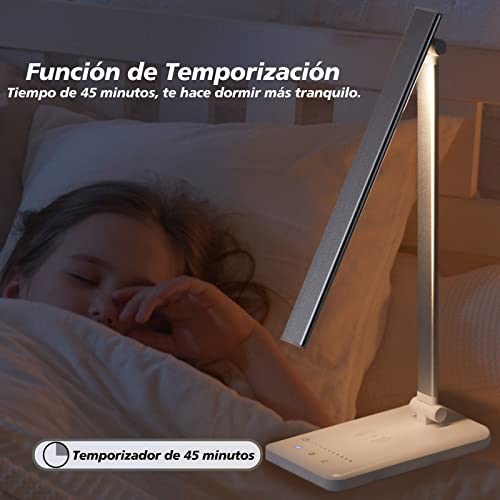 Lampa Biurkowa LED z Ładowarką Bezprzewodową, 10 Jasności, 5 Kolorów, USB, Dotykowe Sterowanie, Timer, Uchwyt na Telefon, Ściemnialne