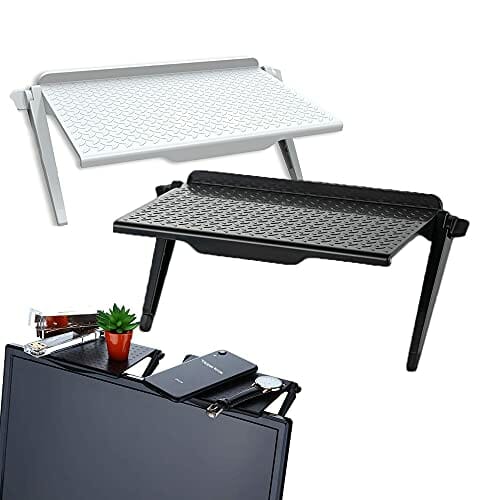 • 【Praktyczna funkcja】 Dzięki tym półkom na ekran komputera możesz umieścić kilka pilotów, routerów, kalkulatorów, zabawek, książek, ramek na zdjęcia, małych roślin, wystroju domu i innych przedmiotów, dzięki czemu Twój stół, stolik kawowy, stół komputerowy w biurze lub w domu.