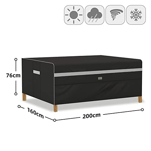 Sekey Gartenmöbel Abdeckung Wasserdicht, mit Belüftungsöffnungen, 160g/㎡ hochwertiges Polyester-Gewebe, UV-Beständiges, Winterfest Abdeckplane Schutzhülle für Gartentisch, 200x160x76cm, Schwarz