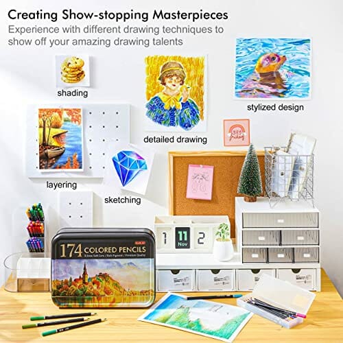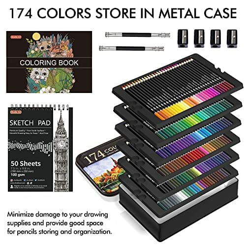 Zestaw 174 kolorowych kredek Shuttle Art Soft Core z akcesoriami – idealny dla artystów, dzieci i dorosłych!