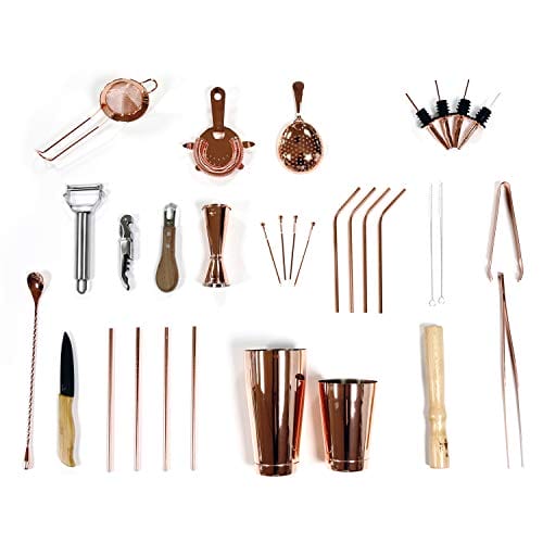Zestaw barmański 32 części z shakerem do koktajli: wysokiej jakości kompletny zestaw dla domu i baru – zestaw barmański do mieszania drinków dla barberów (różowe złoto)