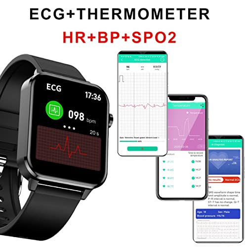 Smart Watch ECG Wodoodporny IP68 Tracker Fitness z Temperaturą Ciała Ekran Dotykowy 1.7″ Monitor Aktywności z Pulsometrem SPO2 Krokomierz Ciśnienie krwi Monitorowanie Snu Mężczyźni Czarny – DigiKuber