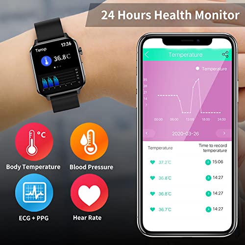 Smart Watch ECG Wodoodporny IP68 Tracker Fitness z Temperaturą Ciała – Monitor Aktywności z Pulsometrem SPO2 Krokomierz Ciśnienie krwi Monitorowanie Snu Mężczyźni Czarny