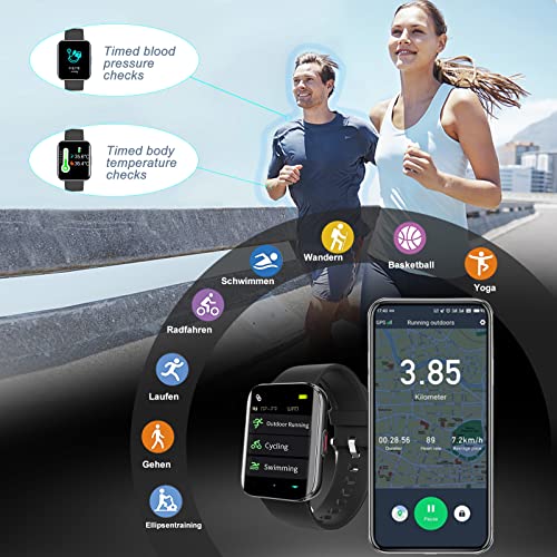 HOOGEE męski zegarek z połączeniem Bluetooth Fitness 24 tryby sportowe monitorowanie tętna SpO2 do snu zegarek Smartwatch Wodoodporny krokomierz kalorie IP67 stoper dla Androida iOS – Monitorowanie zdrowia, powiadomienia i wiele więcej!