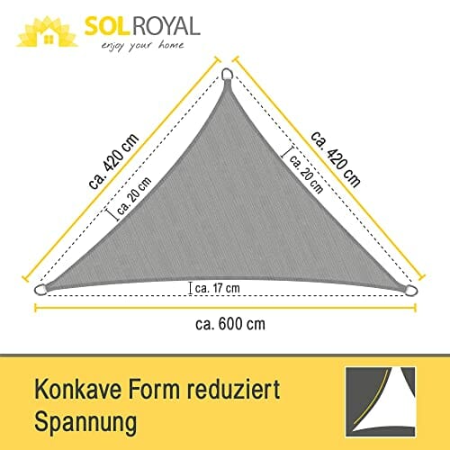 Sol Royal SolVision HS9 – Sonnensegel dreieckig 6×4,2×4,2 m HDPE Atmungsaktiv & UV Schutz Sonnenschutz für Terrasse, Balkon, Pool und Garten – Sonnensegel 600x420x420 cm Schattennetz Grau