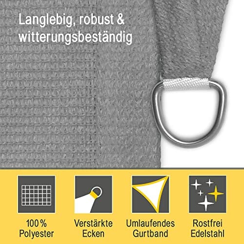 • 𝗥𝗘𝗜ß𝗙𝗘𝗦𝗧 & 𝗦𝗖𝗛𝗜𝗠𝗠𝗘𝗟𝗥𝗘𝗦𝗜𝗦𝗧𝗘𝗡𝗧 – Das Schatten-Segel besteht aus atmungsaktivem 100% Polyethylen mit UV-Stabilisator. Somit ist das Material des Segels reißfest, witterungsbeständig, schimmel- sowie moderbeständig und eignet sich ebenfalls hervorragend als Sichtschutz.