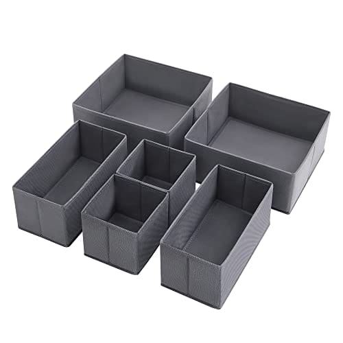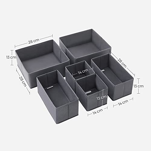 SONGMICS Pudełko do przechowywania szuflady, zestaw 6 sztuk, organizer do bielizny, organizer z szufladami, składane pudełko z materiału na skarpety, bieliznę, biustonosz, krawaty i szaliki, szary