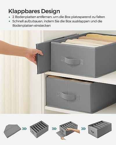 • [Przestronne przegródki] Wymiary 42 x 30 x 17 cm (dł. x szer. x wys.) każdy organizer do szafy ma 6 przegródek. Przegródki o szerokości 7 cm sprawiają, że organizowanie i sortowanie nieporęcznych przedmiotów, takich jak dżinsy i swetry, jest dziecinnie proste