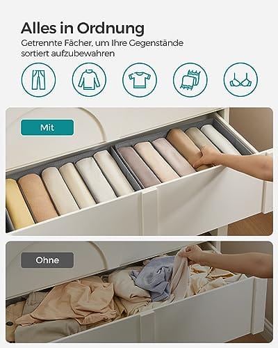 • [Przestronne przegródki] Wymiary 42 x 30 x 17 cm (dł. x szer. x wys.) każdy organizer do szafy ma 6 przegródek. Przegródki o szerokości 7 cm sprawiają, że organizowanie i sortowanie nieporęcznych przedmiotów, takich jak dżinsy i swetry, jest dziecinnie proste