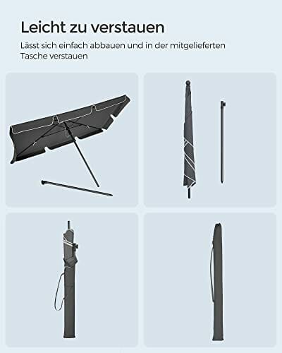 SONGMICS Parasol przeciwsłoneczny, prostokątny, 200 x 125 cm, ochrona przed promieniowaniem UV do UPF 50+, torba, z powłoką PA, do ogrodu, na taras, b