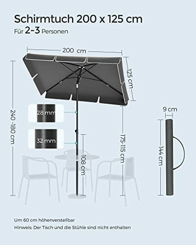SONGMICS Parasol przeciwsłoneczny, prostokątny, 200 x 125 cm, ochrona