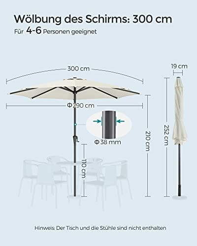 - [Für verschiedene Szenarien geeignet] Der 300 cm Sonnenschirm spendet 4-6 Personen ausreichend Schatten im Garten, auf der Terrasse, auf dem Balkon oder am Pool
