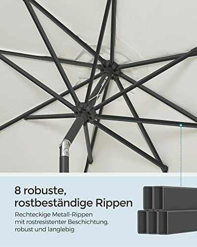 - [Stabile und langlebige Rippen] Die Rippen des Gartenschirms bestehen aus hochwertigem, pulverbeschichtetem Stahl, sind robust, stabil, rostbeständig und gewährleisten eine lange Gebrauchsdauer