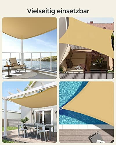 - [Schattenspender für Sommertage] Mit diesem quadratischen Sonnensegel, das 80-85% der Sonnenstrahlen abwehrt, schaffen Sie eine schattige Wohlfühl-Oase auf der Terrasse. Kleiner Hinweis: Je dunkler das Sonnensegel, desto besser der Schutz vor der Sonne